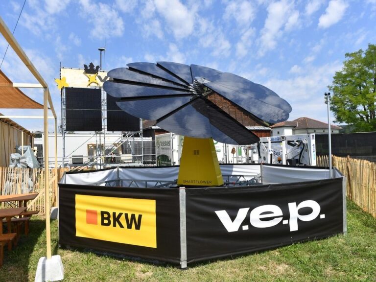 Besonders aufgefallen dürften ihnen dabei die Smartflower sein: Bei der mobilen Photovoltaik-Anlage sind die auffächerbaren Module auf einem drehbaren Kopf angebracht. Die Modulflächen folgen der Sonne, was laut Hersteller eine bis zu 40 Prozent höhere Stromproduktion ermöglicht – und dies einzig mit erneuerbarer Energie.